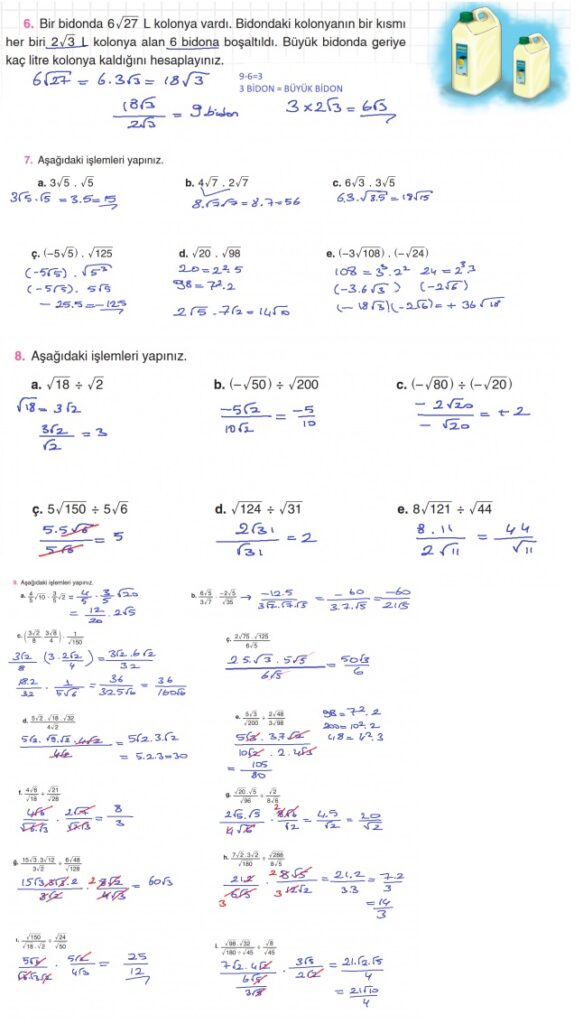8. SINIF MATEMATİK KOZA YAYINLARI DERS KİTABI CEVAPLARI