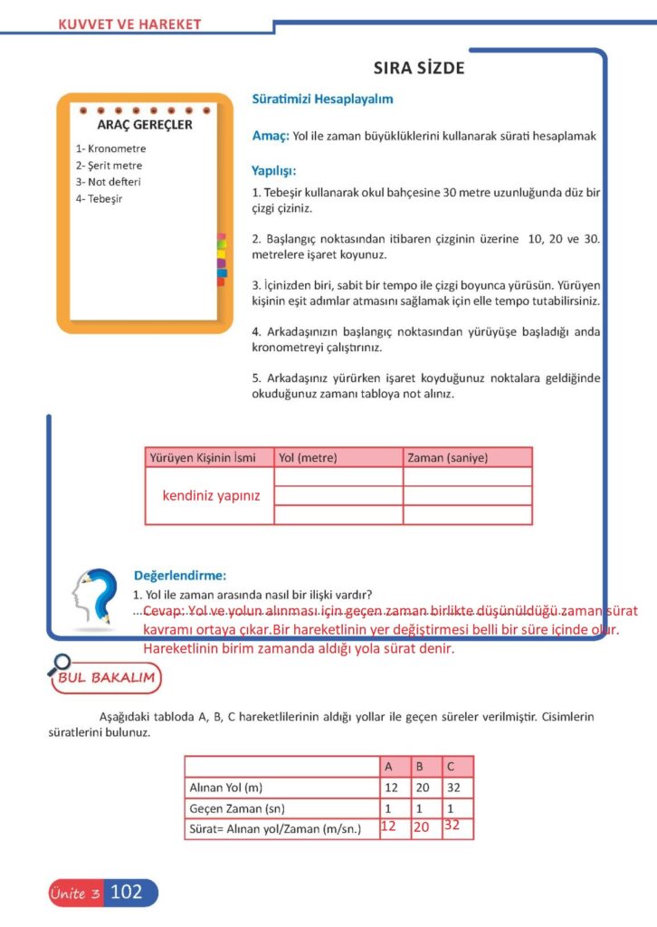 6.Sınıf Fen Meb Yayınları Sayfa 102 Cevabı