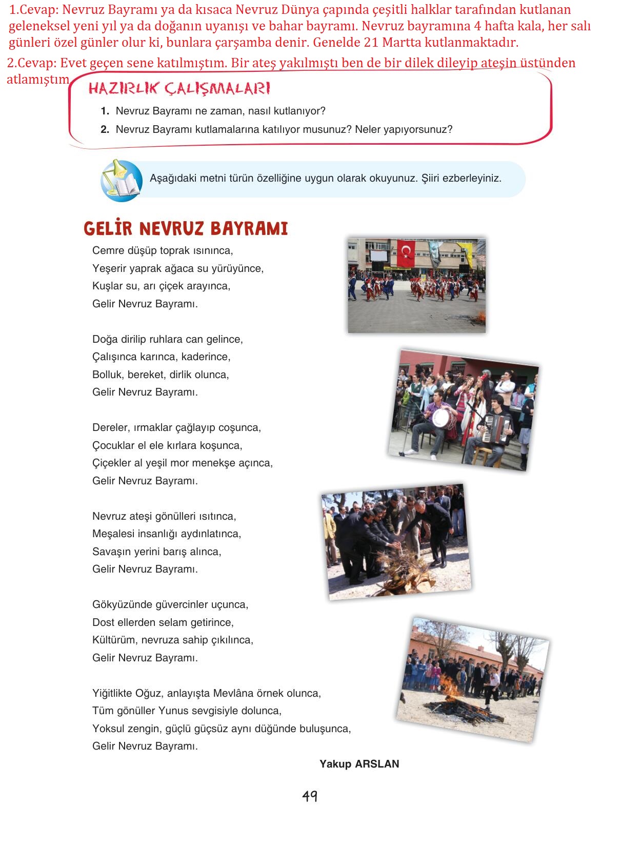 7.sınıf türkçe ders kitabı dörtel yayınları sayfa 49 cevap anahtarı cevabı sayfa olarak çözümlerini yanıtları sizler için sunduk. Tüm ders kitabı cevapları gelecek yıl yine sitemizde olacak.