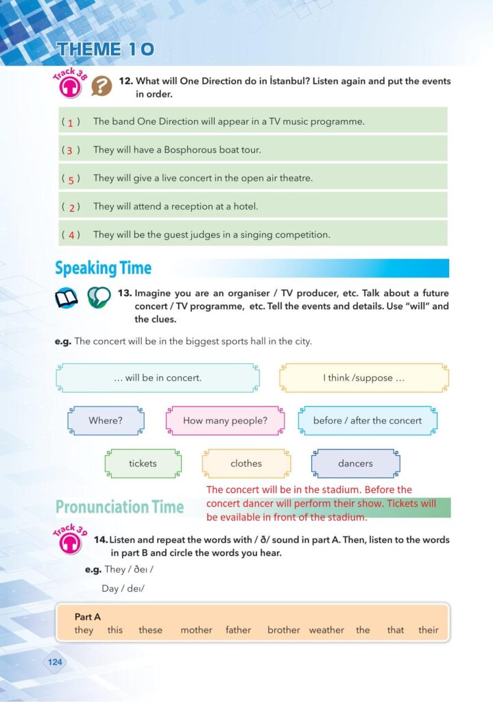 9. Sınıf İngilizce Relearn Pasifik Yayınları Sayfa 124 Cevapları / Cevabı