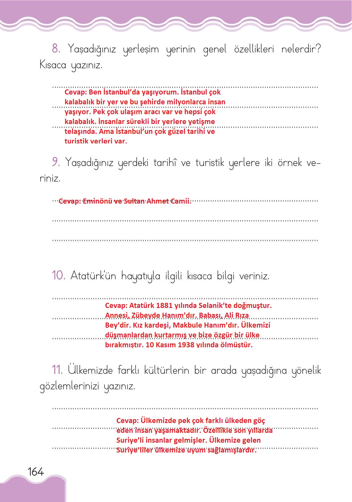 1. Sınıf Hayat Bilgisi Ardıç Yayınları Sayfa 164 Cevapları / Cevabı