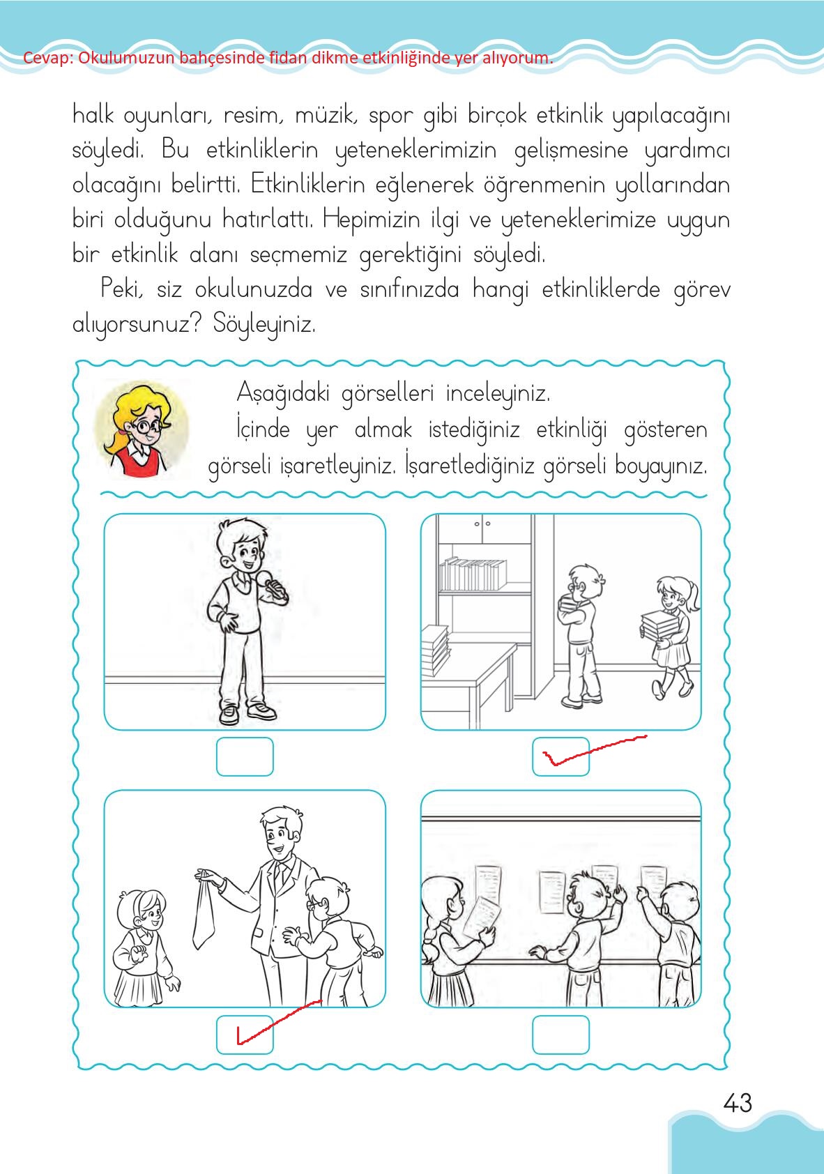 1. Sınıf Hayat Bilgisi Ardıç Yayınları Sayfa 43 Cevapları / Cevabı