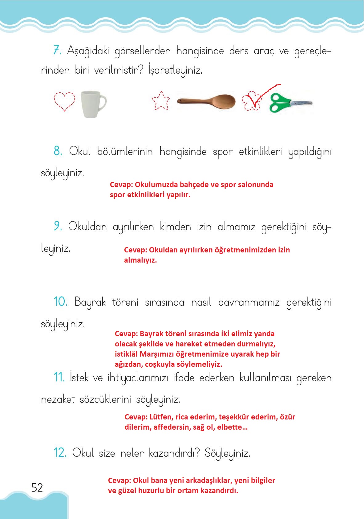 1. Sınıf Hayat Bilgisi Ardıç Yayınları Sayfa 52 Cevapları / Cevabı