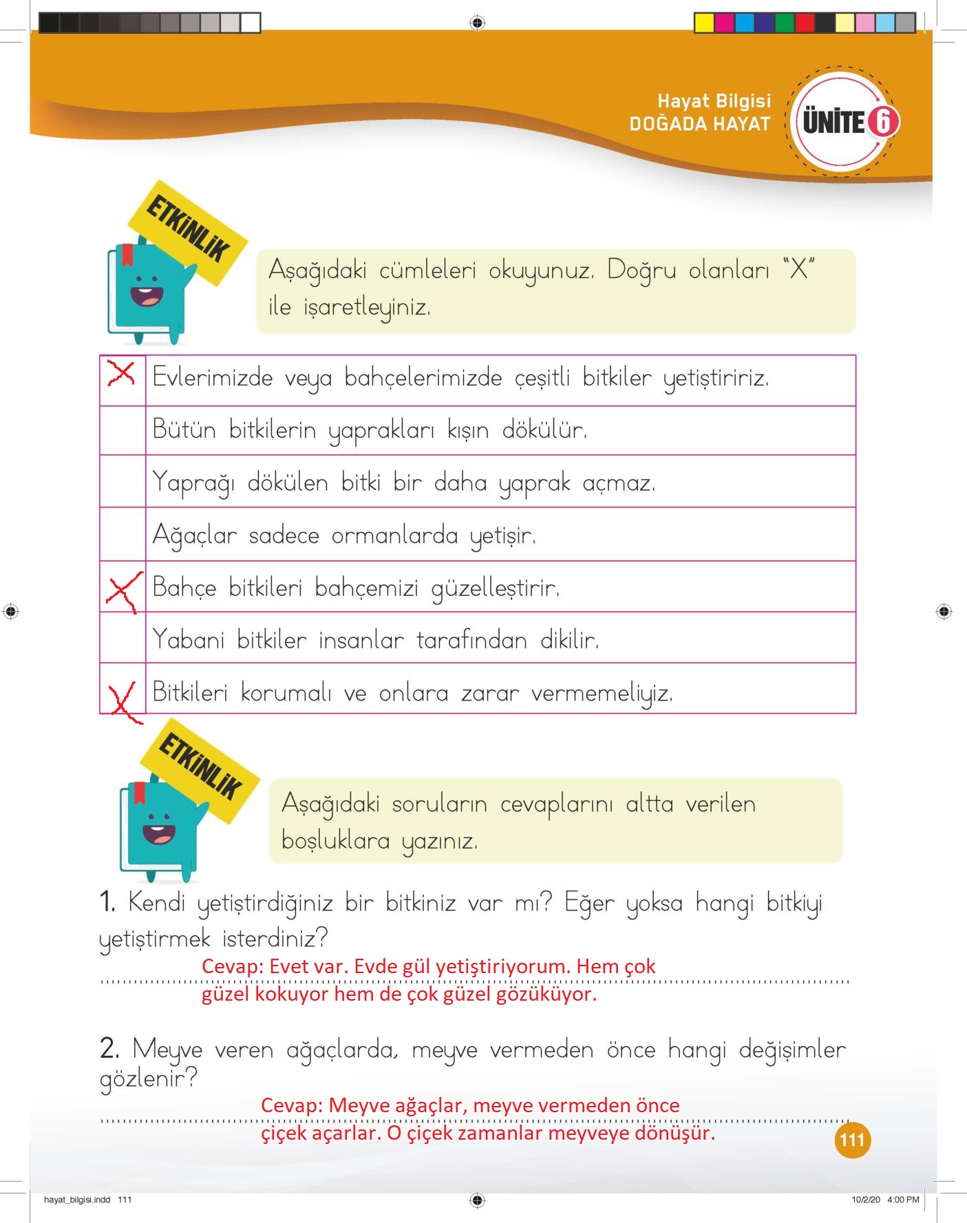 1. Sınıf Hayat Bilgisi Çalışma Kitabı (1. Kitap) Meb Yayınları Sayfa 111 Cevapları / Cevabı