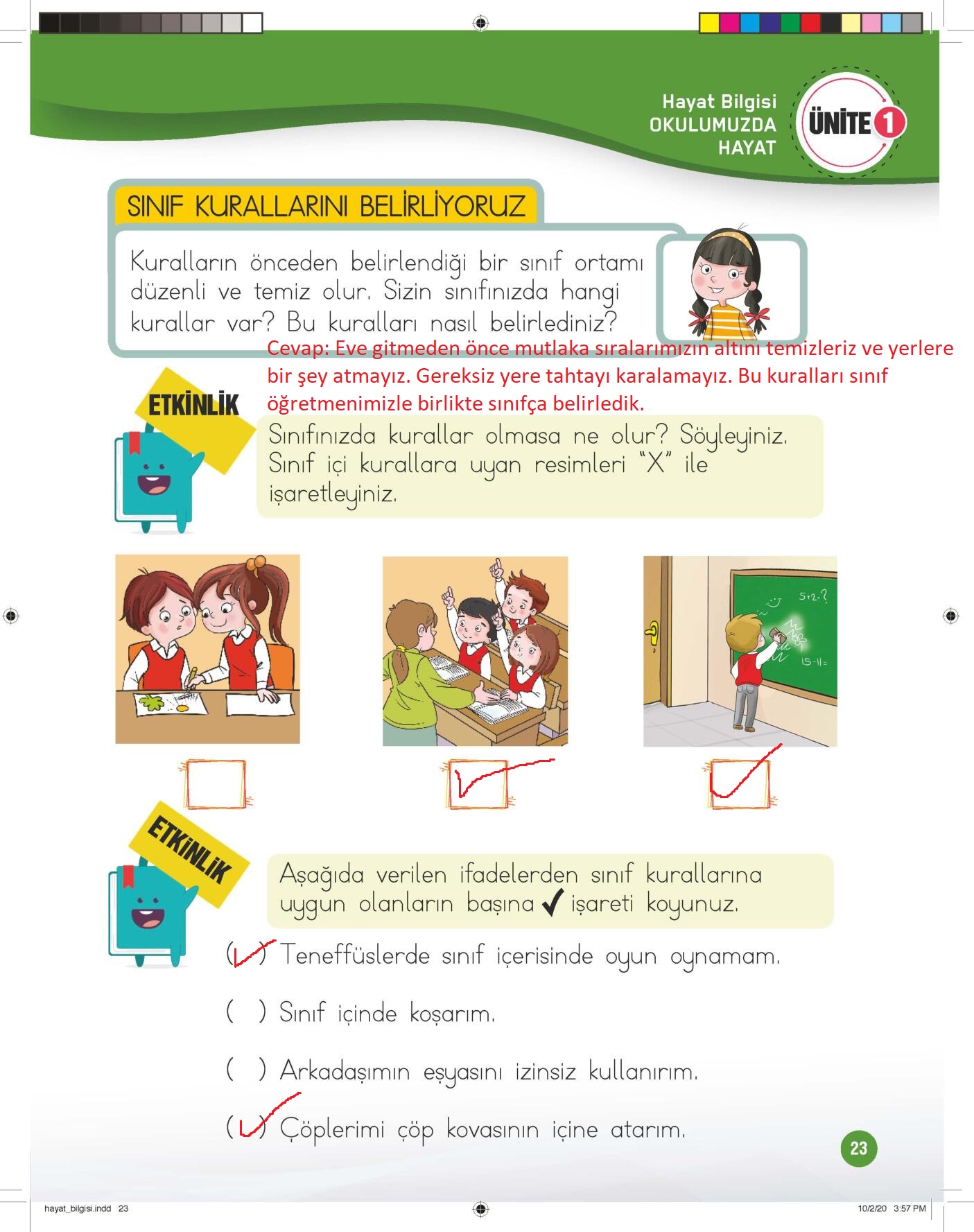 1. Sınıf Hayat Bilgisi Çalışma Kitabı (1. Kitap) Meb Yayınları Sayfa 23 Cevapları / Cevabı