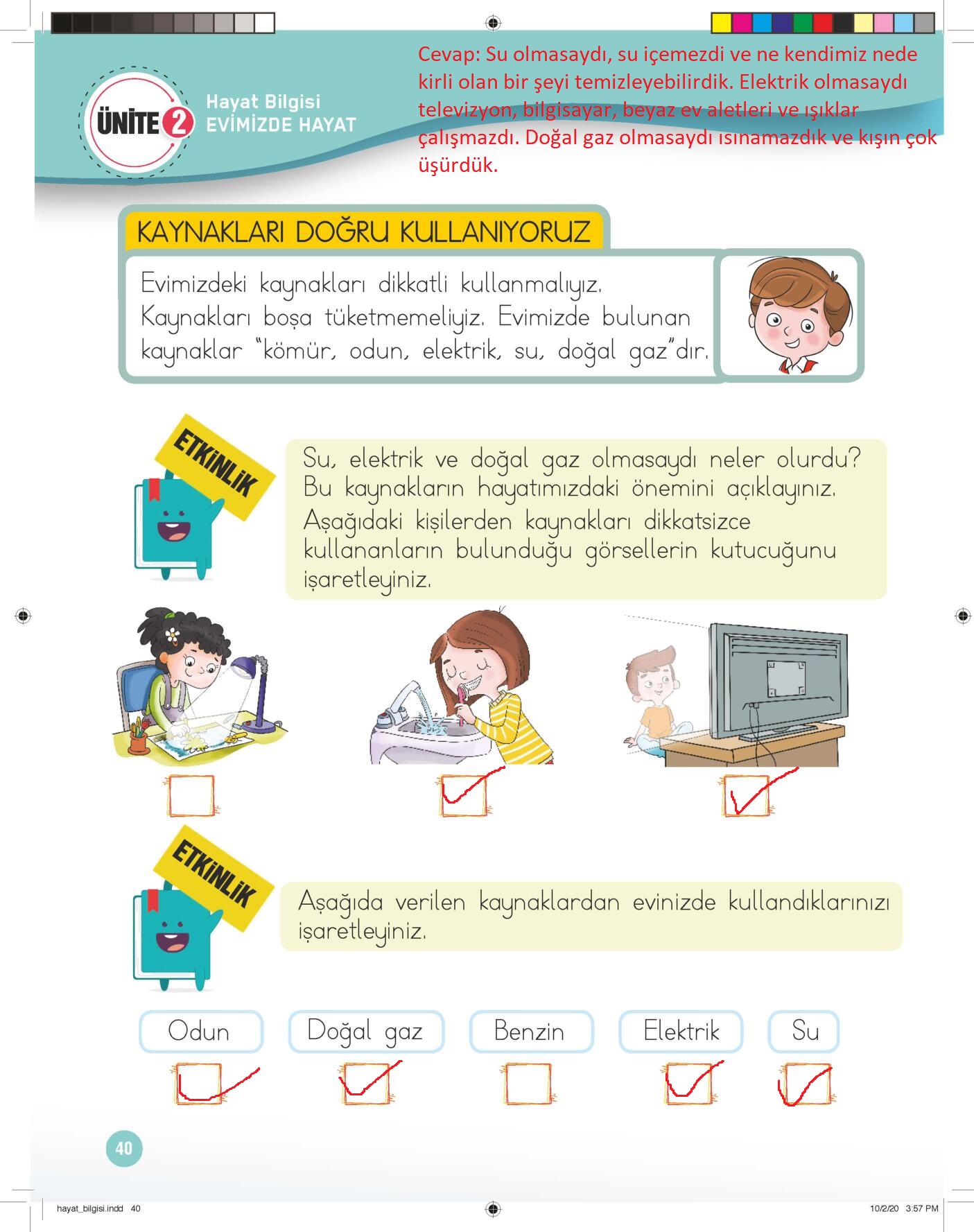 1. Sınıf Hayat Bilgisi Çalışma Kitabı (1. Kitap) Meb Yayınları Sayfa 40 Cevapları / Cevabı