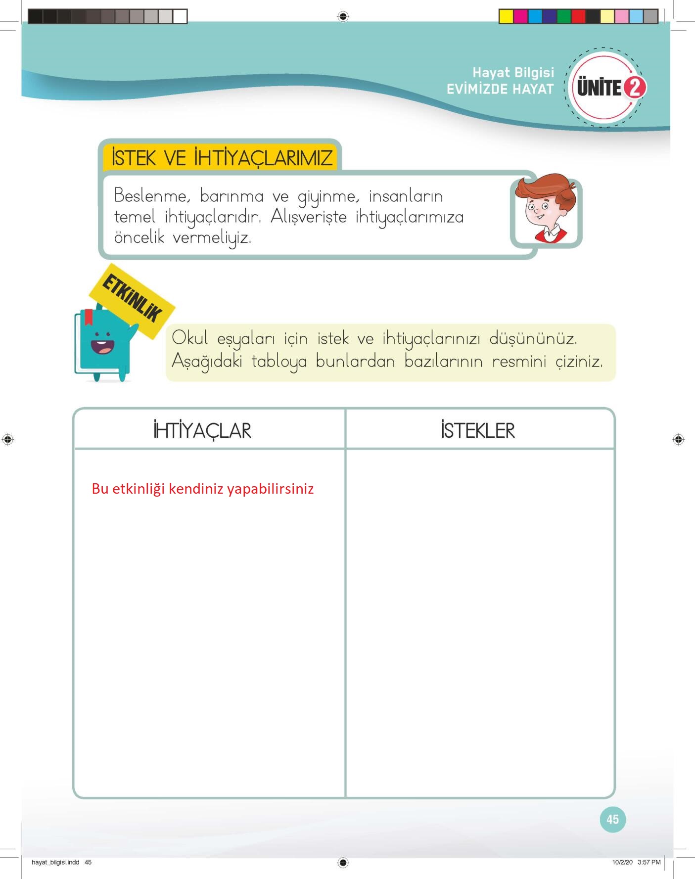 1. Sınıf Hayat Bilgisi Çalışma Kitabı (1. Kitap) Meb Yayınları Sayfa 45 Cevapları / Cevabı