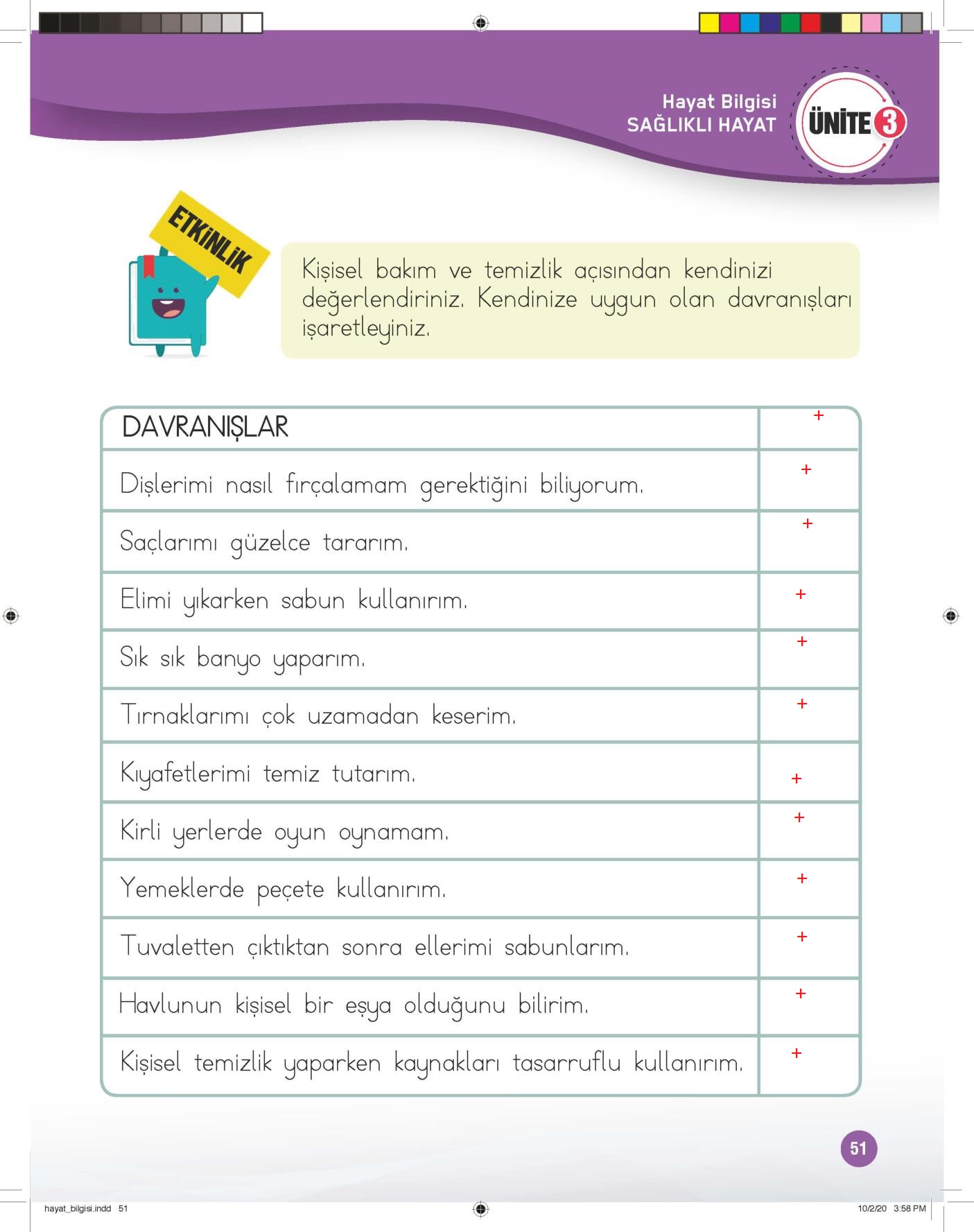 1. Sınıf Hayat Bilgisi Çalışma Kitabı (1. Kitap) Meb Yayınları Sayfa 51 Cevapları / Cevabı
