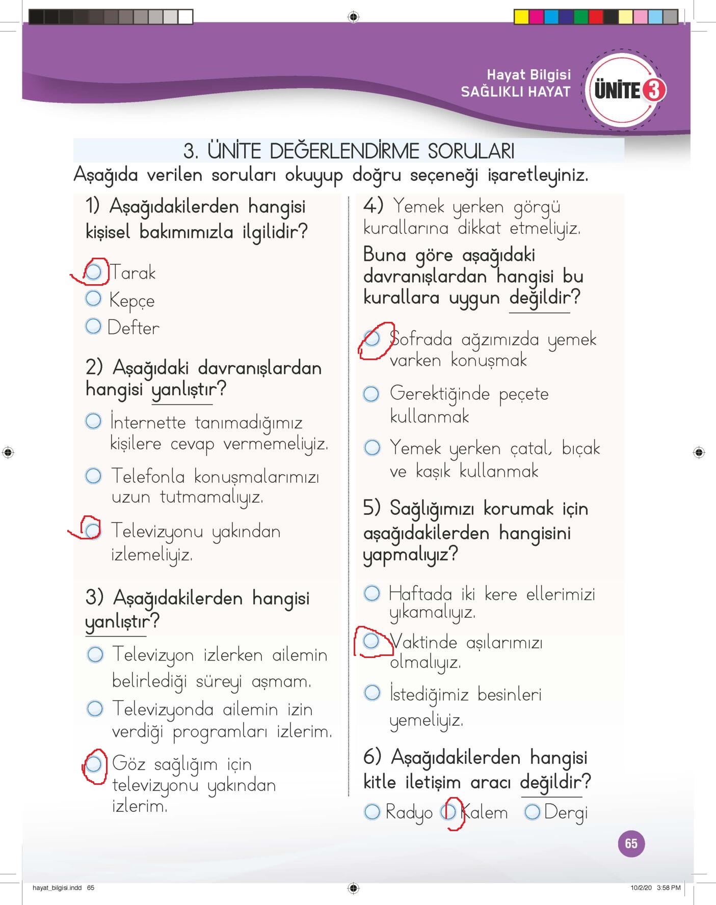 1. sınıf hayat bilgisi çalışma kitabı meb yayınları sayfa 65 cevap anahtarı 2023-2024 sayfa olarak çözümlerini yanıtları sizler için aşağıda sunduk. 2025-2026 meb yayınları hayat bilgisi çalışma kitabı cevapları yine sitemizde olacak.