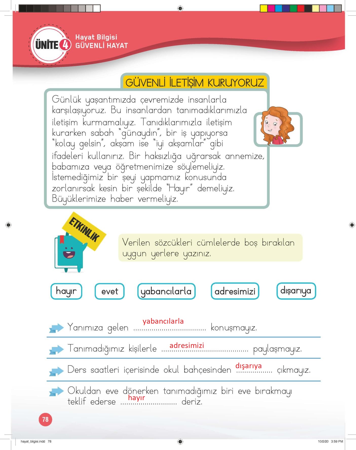 1. Sınıf Hayat Bilgisi Çalışma Kitabı (1. Kitap) Meb Yayınları Sayfa 78 Cevapları / Cevabı