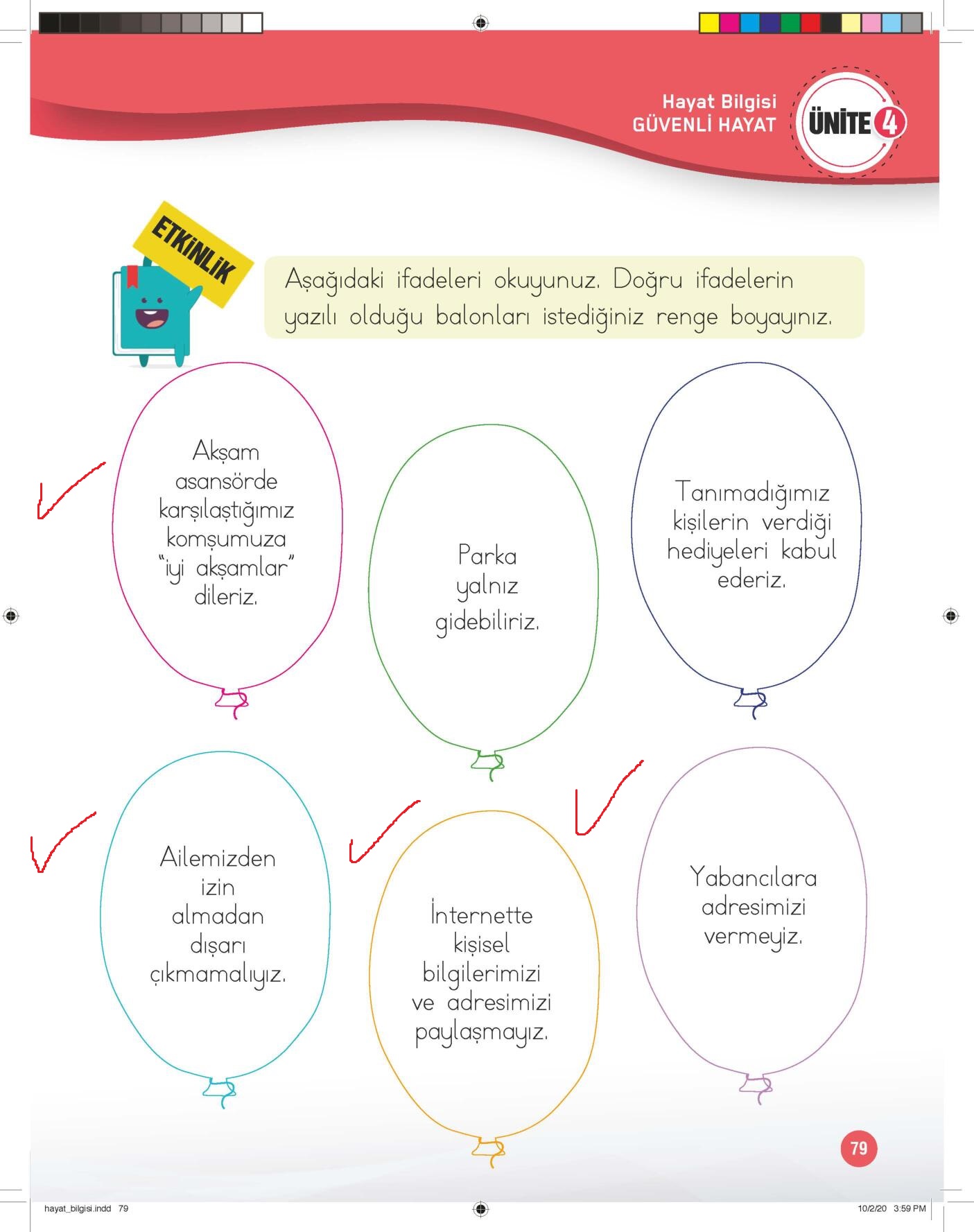 1. Sınıf Hayat Bilgisi Çalışma Kitabı (1. Kitap) Meb Yayınları Sayfa 79 Cevapları / Cevabı