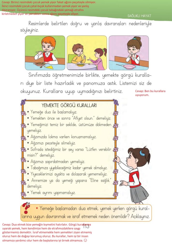 1. Sınıf Hayat Bilgisi Ders Kitabı İhsan Yayınları Sayfa 113 Cevapları