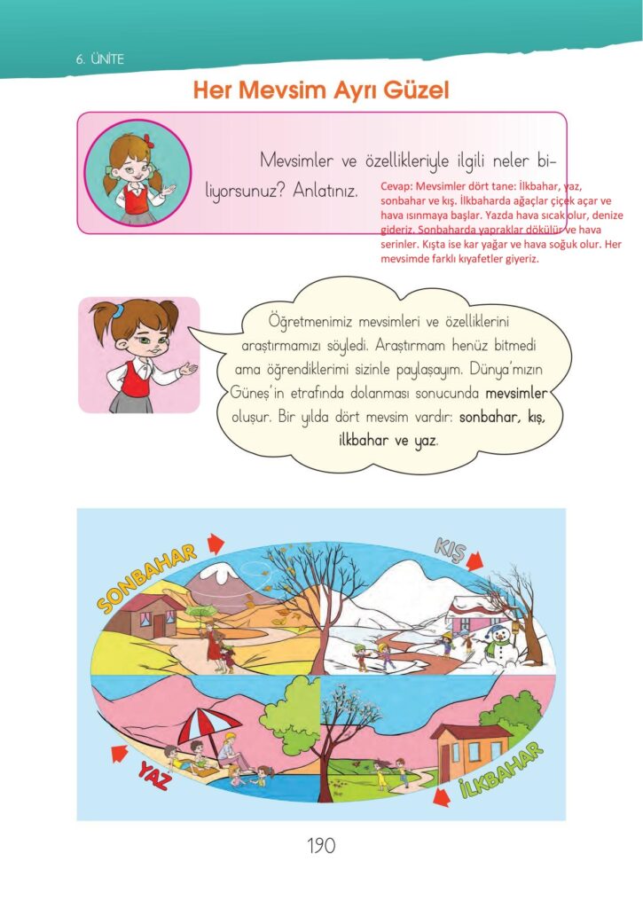 1. Sınıf Hayat Bilgisi Ders Kitabı İhsan Yayınları Sayfa 190 Cevapları