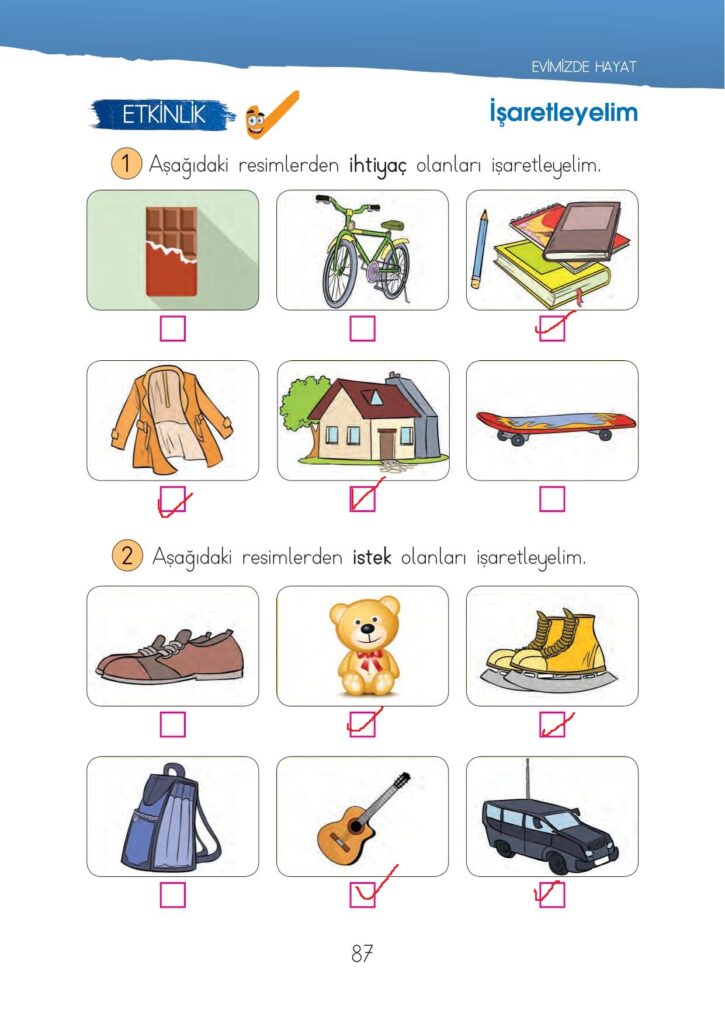 1. Sınıf Hayat Bilgisi Ders Kitabı İhsan Yayınları Sayfa 87 Cevapları