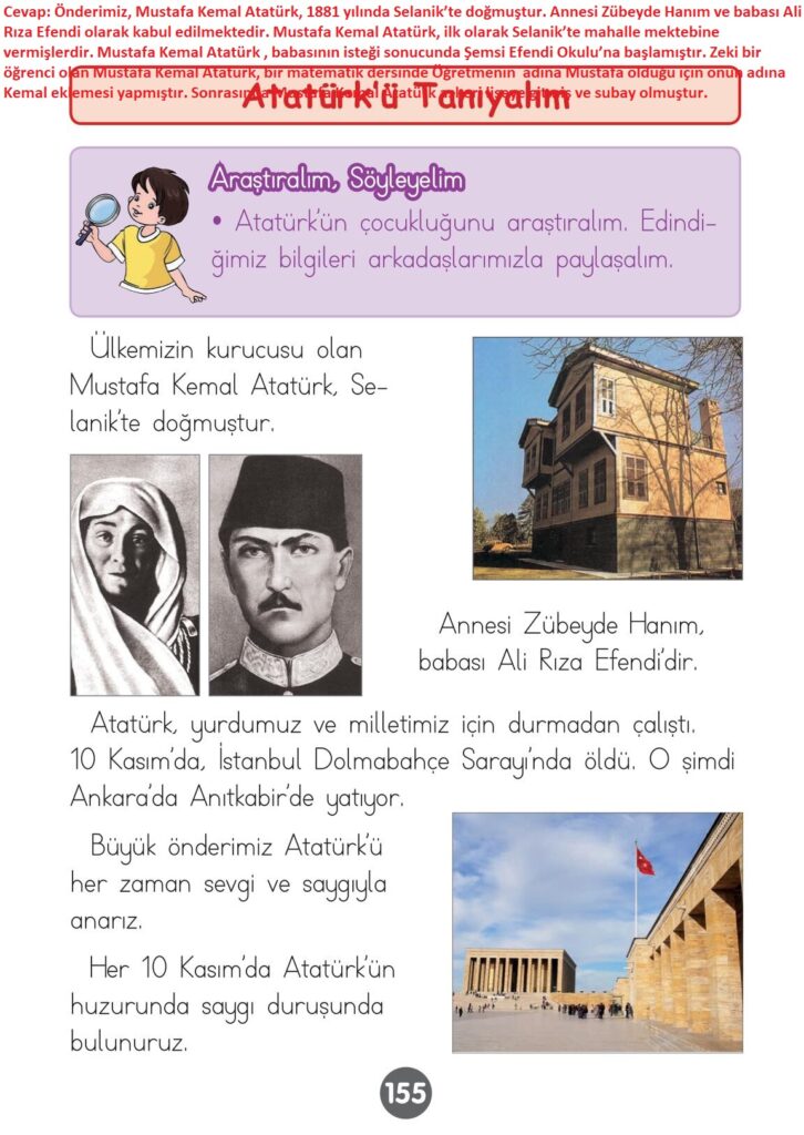 1. sınıf hayat bilgisi ders kitabı kök-e yayınları sayfa 155 cevap anahtarı 2022-2023 sayfa olarak çözümlerini yanıtları sizler için aşağıda sunduk. 2025-2026 kök-e yayınları hayat bilgisi ders kitabı cevapları yine sitemizde olacak.