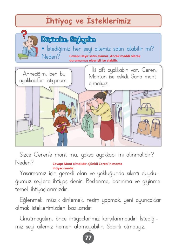 1. Sınıf Hayat Bilgisi Kök-e Yayınları Sayfa 77 Cevapları / Cevabı