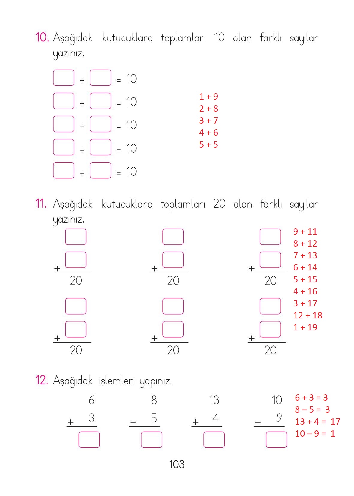 1. sınıf matematik ders kitabı açılım yayınları sayfa 103 cevap anahtarı 2022-2023 sayfa olarak çözümlerini yanıtları sizler için aşağıda sunduk. 2025-2026 açılım yayınları matematik ders kitabı cevapları yine sitemizde olacak.