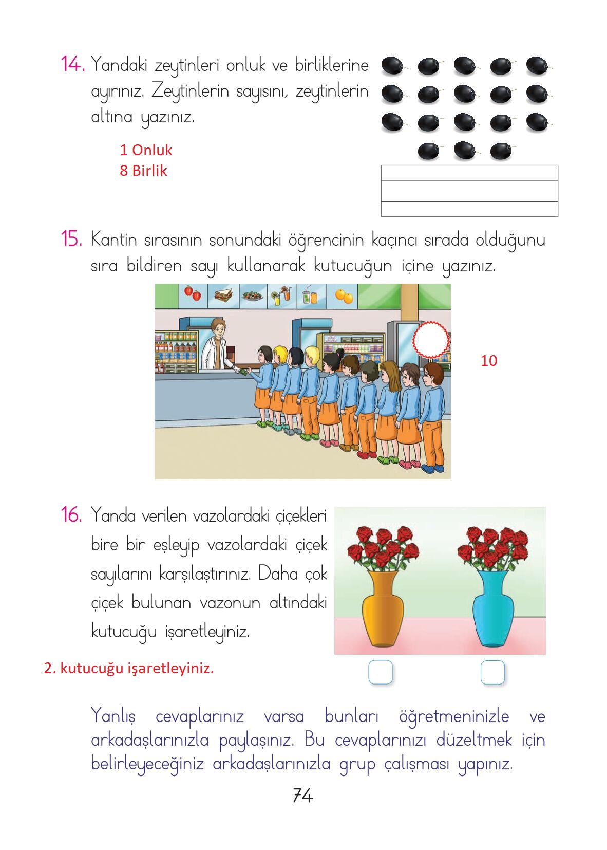 1. Sınıf Matematik Açılım Yayınları Sayfa 74 Cevapları / Cevabı