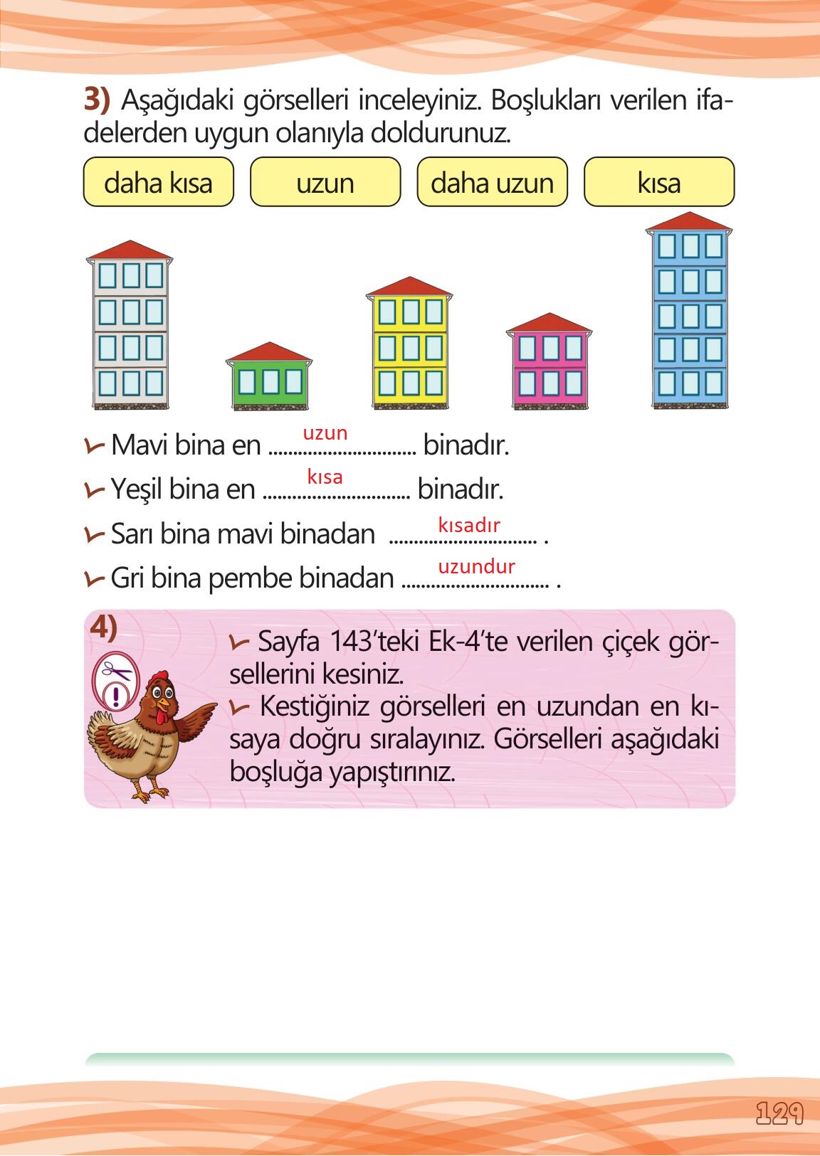 1. Sınıf Matematik Çalışma Kitabı (1. Kitap ) Meb Yayınları Sayfa 129 Cevapları / Cevabı