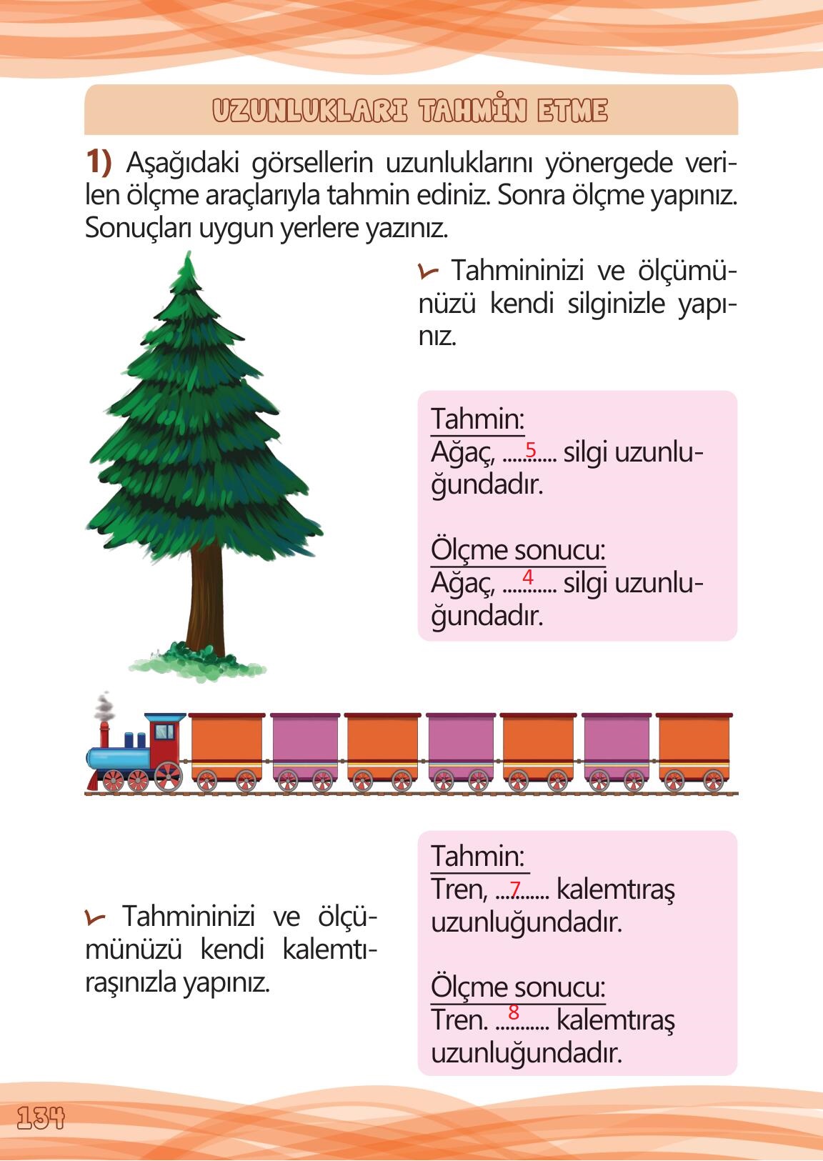 1. Sınıf Matematik Çalışma Kitabı (1. Kitap ) Meb Yayınları Sayfa 134 Cevapları / Cevabı