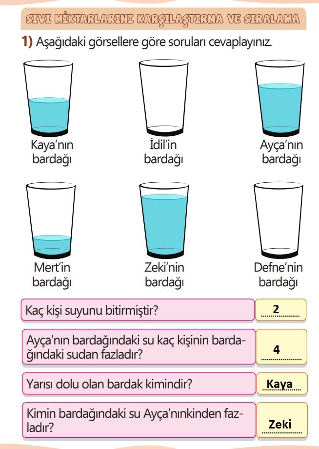 1. SINIF MATEMATİK MEB YAYINLARI ÇALIŞMA KİTABI CEVAPLARI TÜM SAYFALAR