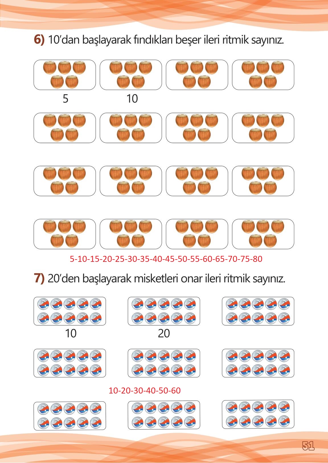 1. Sınıf Matematik Çalışma Kitabı (1. Kitap ) Meb Yayınları Sayfa 51 Cevapları / Cevabı