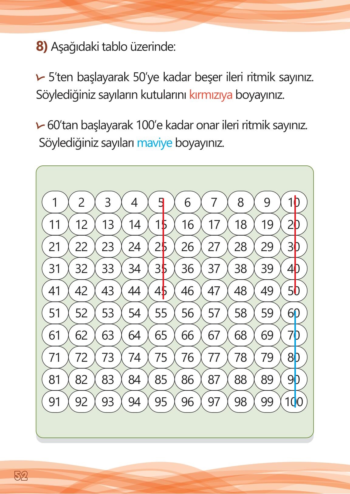1. Sınıf Matematik Çalışma Kitabı (1. Kitap ) Meb Yayınları Sayfa 52 Cevapları / Cevabı