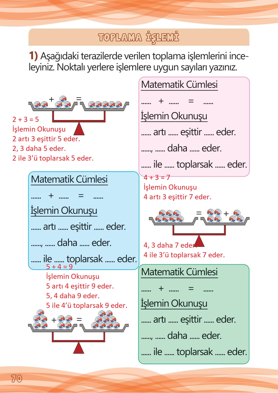 1. Sınıf Matematik Çalışma Kitabı (1. Kitap ) Meb Yayınları Sayfa 70 Cevapları / Cevabı