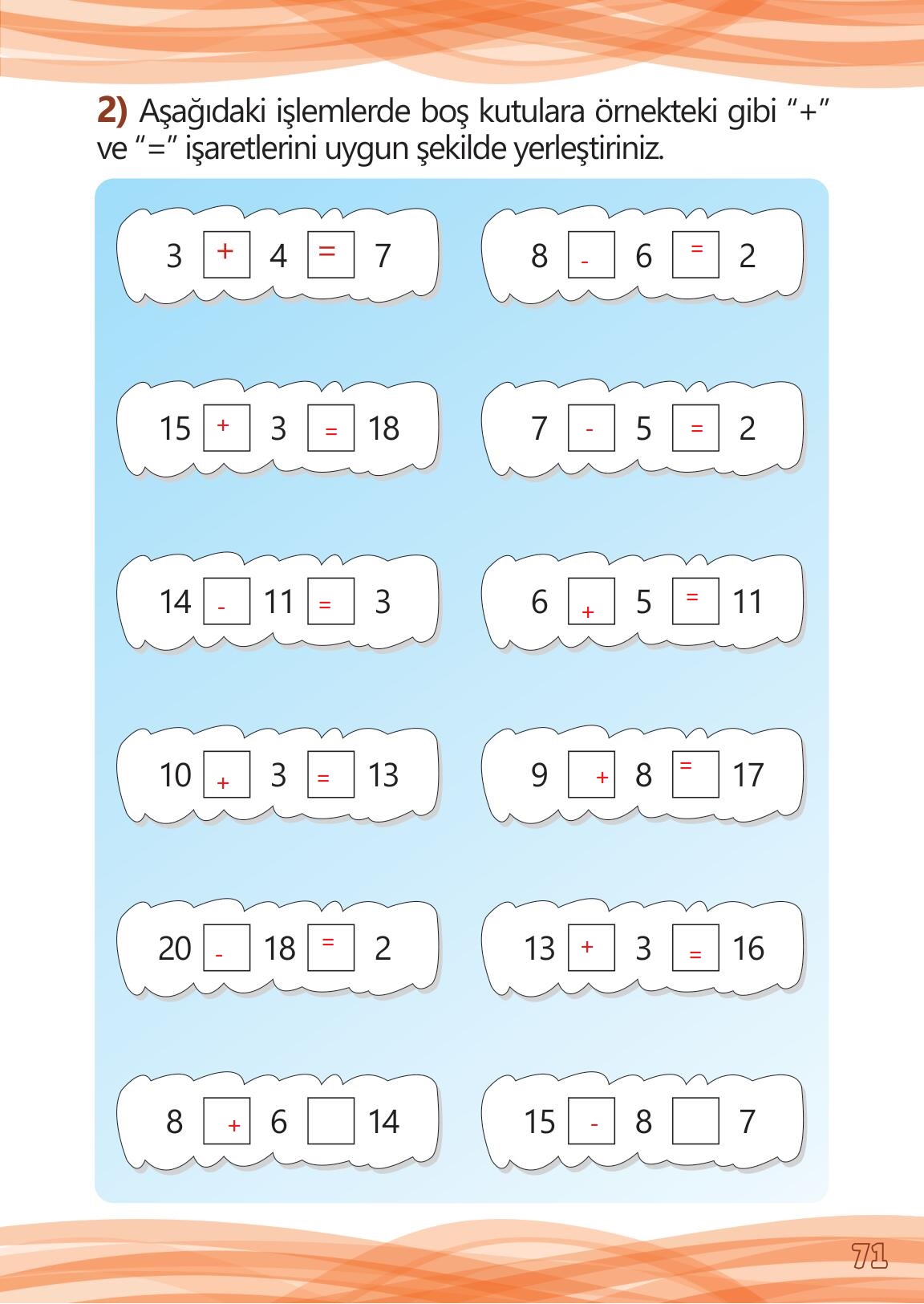 1. Sınıf Matematik Çalışma Kitabı (1. Kitap ) Meb Yayınları Sayfa 71 Cevapları / Cevabı