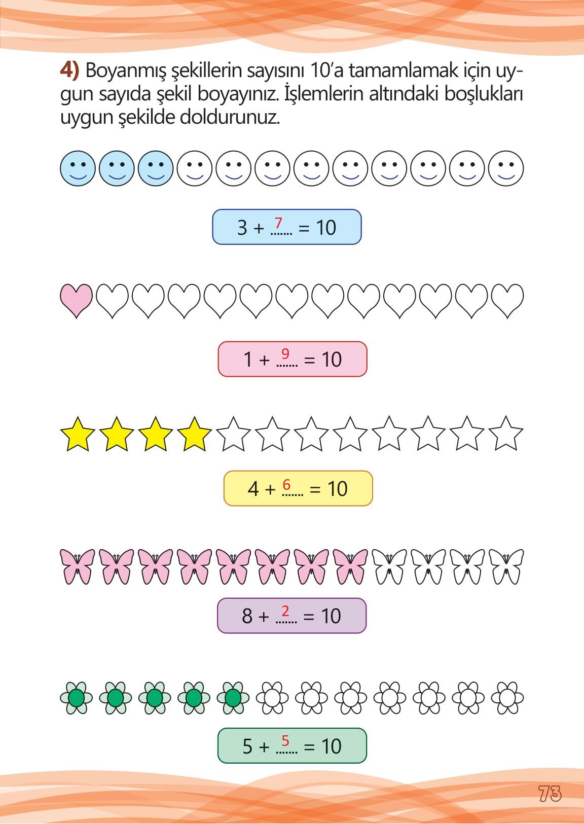 1. Sınıf Matematik Çalışma Kitabı (1. Kitap ) Meb Yayınları Sayfa 73 Cevapları / Cevabı