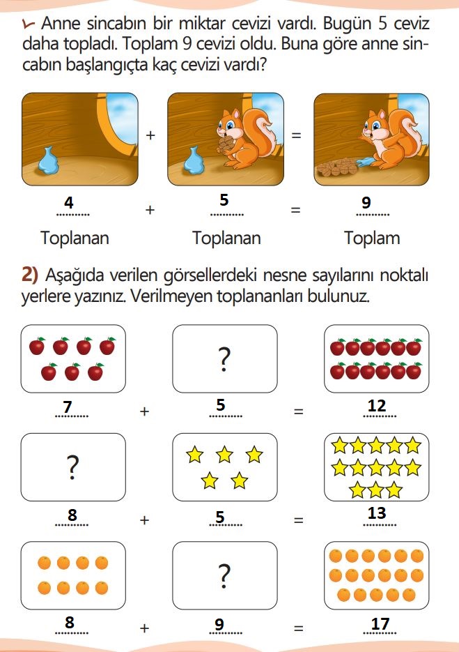 1. SINIF MATEMATİK MEB YAYINLARI ÇALIŞMA KİTABI CEVAPLARI TÜM SAYFALAR