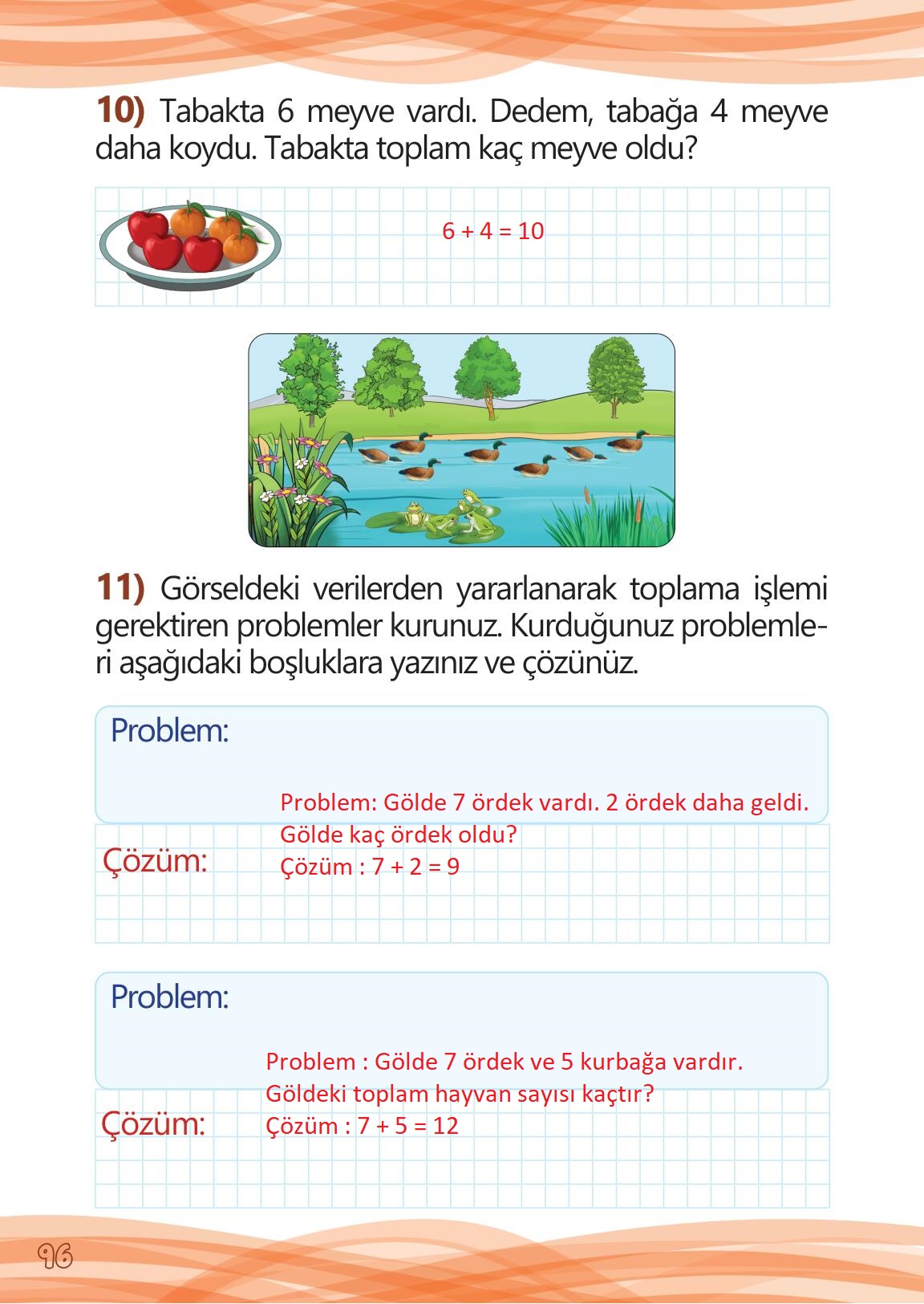 1. Sınıf Matematik Çalışma Kitabı (1. Kitap ) Meb Yayınları Sayfa 96 Cevapları / Cevabı