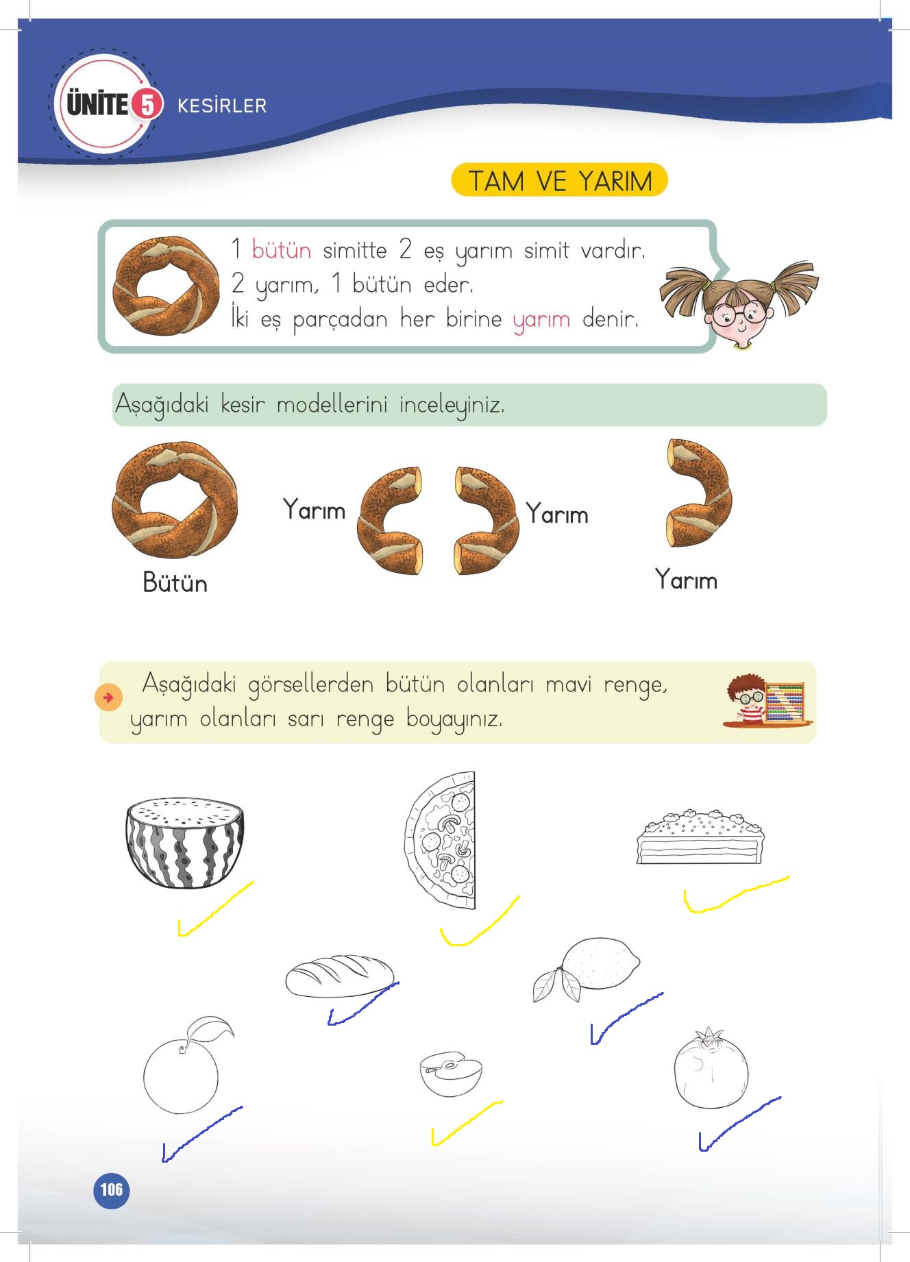 1. Sınıf Matematik Çalışma Kitabı (2. Kitap) Meb Yayınları Sayfa 106 Cevapları / Cevabı