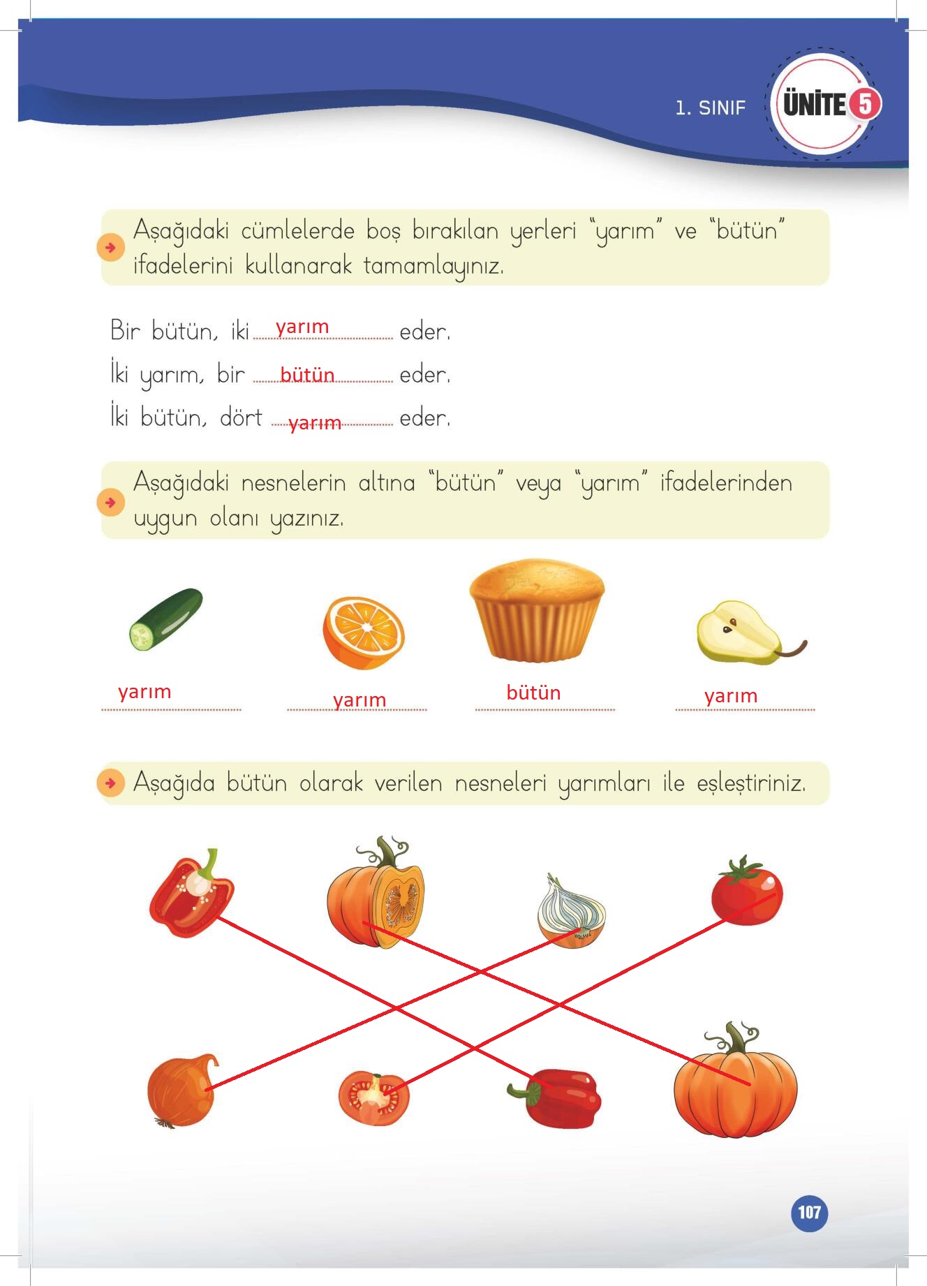 1. Sınıf Matematik Çalışma Kitabı (2. Kitap) Meb Yayınları Sayfa 107 Cevapları / Cevabı