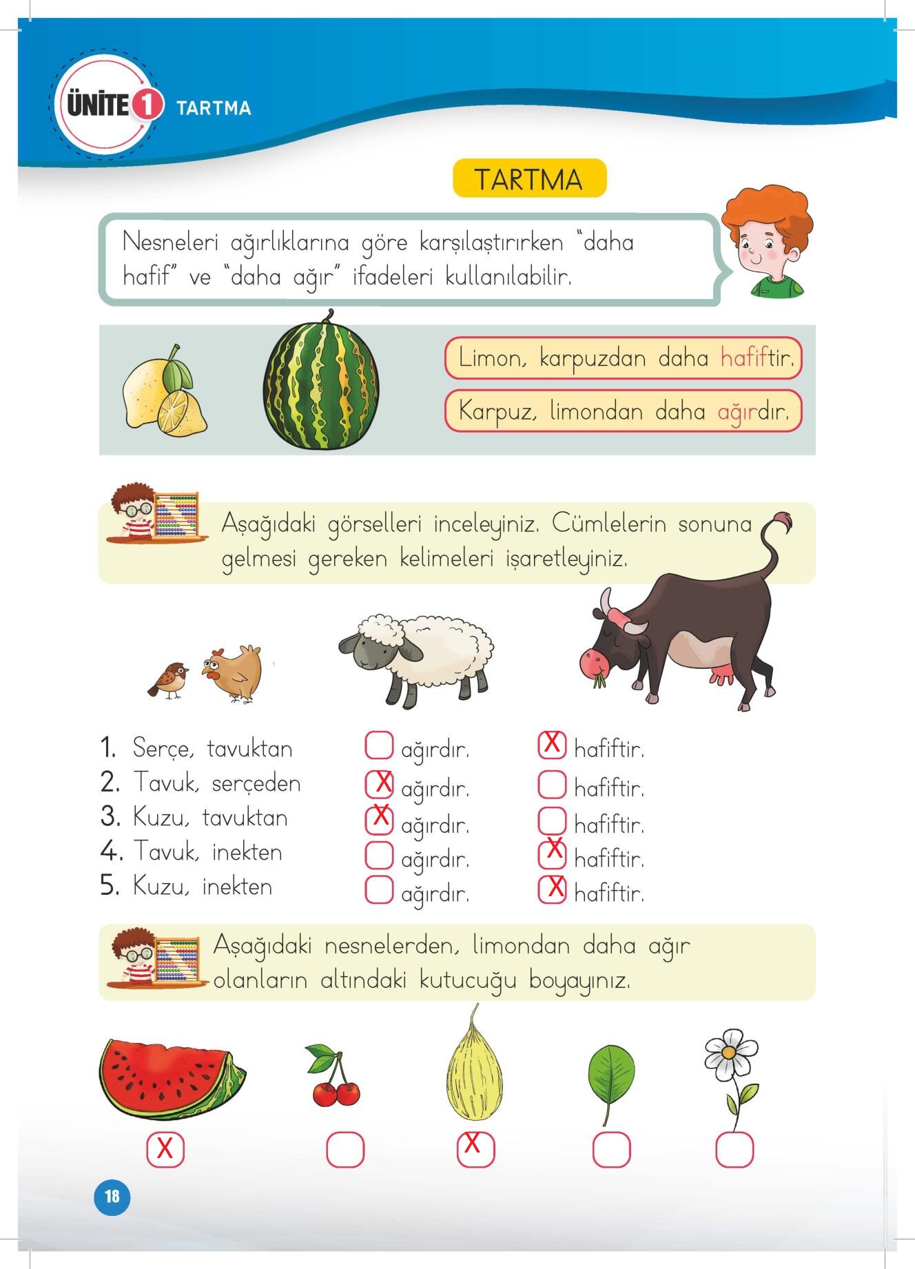 1. Sınıf Matematik Çalışma Kitabı (2. Kitap) Meb Yayınları Sayfa 18 Cevapları / Cevabı
