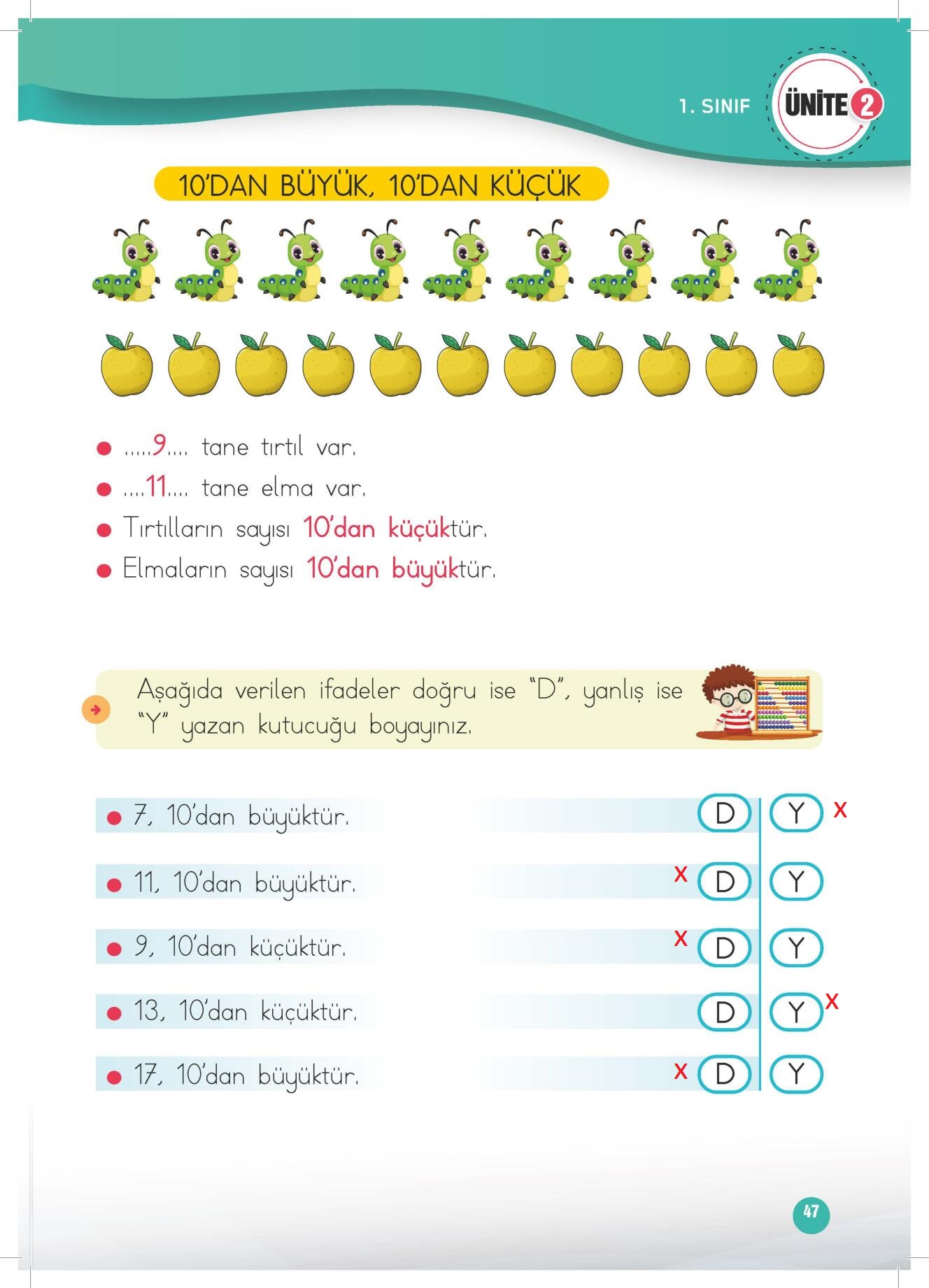 1. Sınıf Matematik Çalışma Kitabı (2. Kitap) Meb Yayınları Sayfa 47 Cevapları / Cevabı