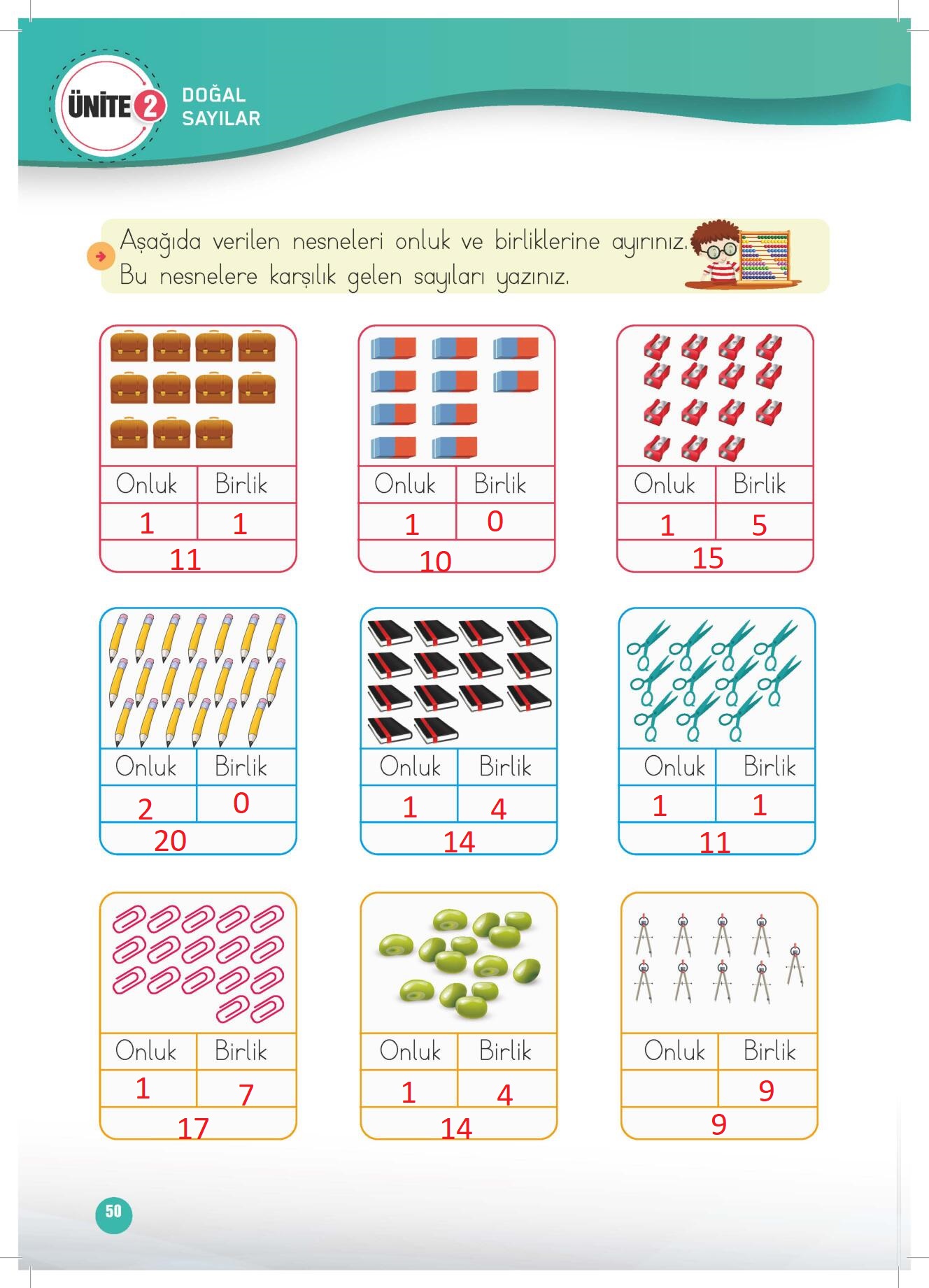 1. Sınıf Matematik Çalışma Kitabı (2. Kitap) Meb Yayınları Sayfa 50 Cevapları / Cevabı