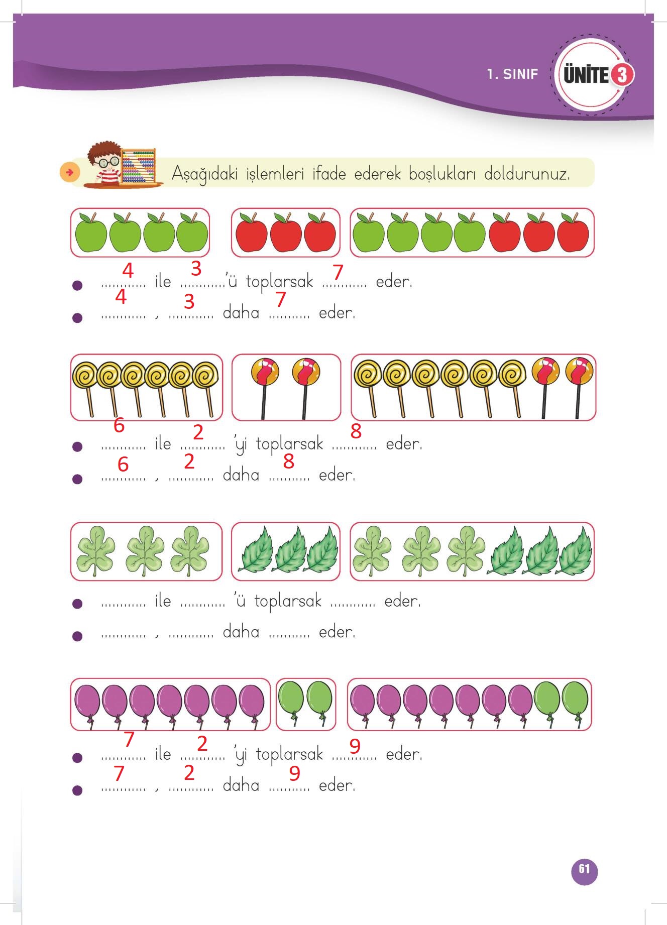 1. Sınıf Matematik Çalışma Kitabı (2. Kitap) Meb Yayınları Sayfa 61 Cevapları / Cevabı