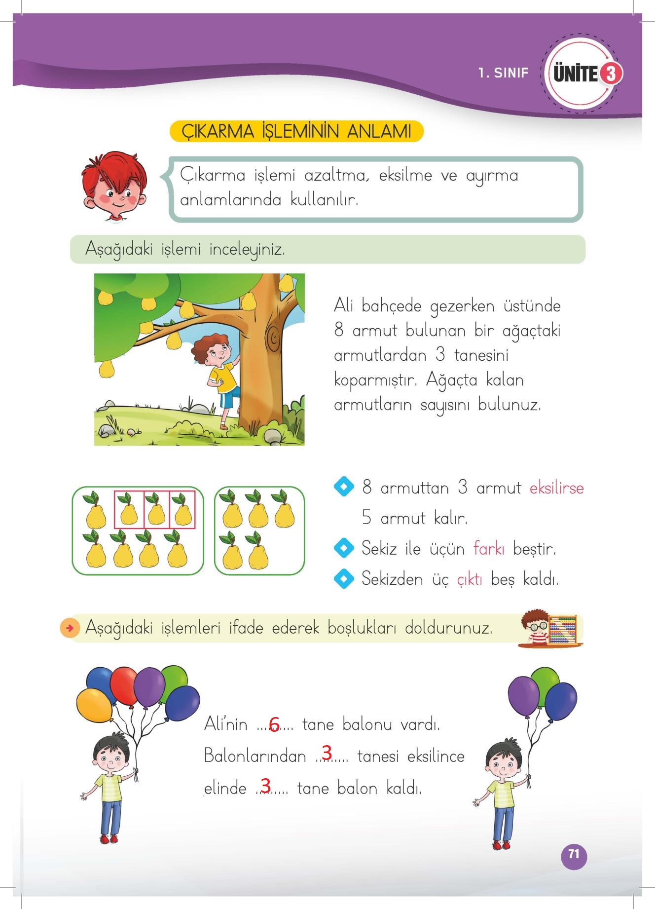 1. sınıf matematik çalışma kitabı meb yayınları sayfa 71 cevap anahtarı 2022-2023 sayfa olarak çözümlerini yanıtları sizler için aşağıda sunduk. 2025-2026 meb yayınları matematik çalışma kitabı cevapları yine sitemizde olacak.