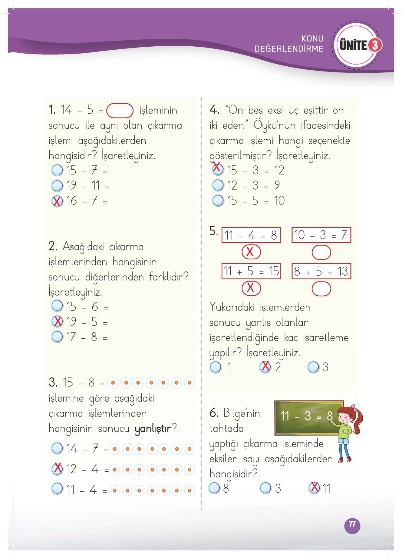 1. Sınıf Matematik Çalışma Kitabı (2. Kitap) Meb Yayınları Sayfa 77 Cevapları / Cevabı