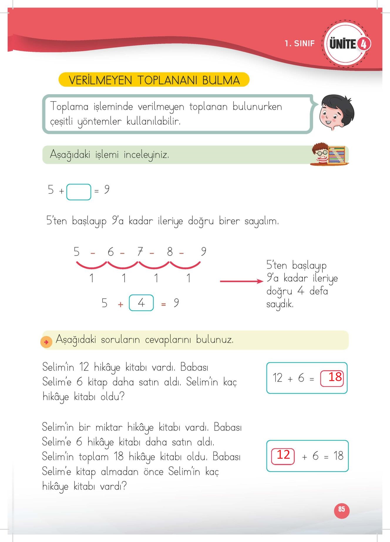 1. Sınıf Matematik Çalışma Kitabı (2. Kitap) Meb Yayınları Sayfa 85 Cevapları / Cevabı