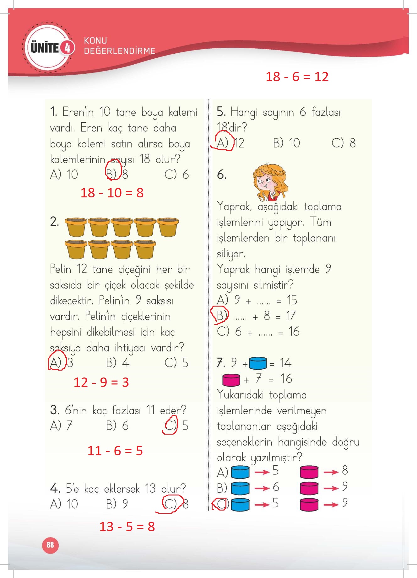 1. Sınıf Matematik Çalışma Kitabı (2. Kitap) Meb Yayınları Sayfa 88 Cevapları / Cevabı