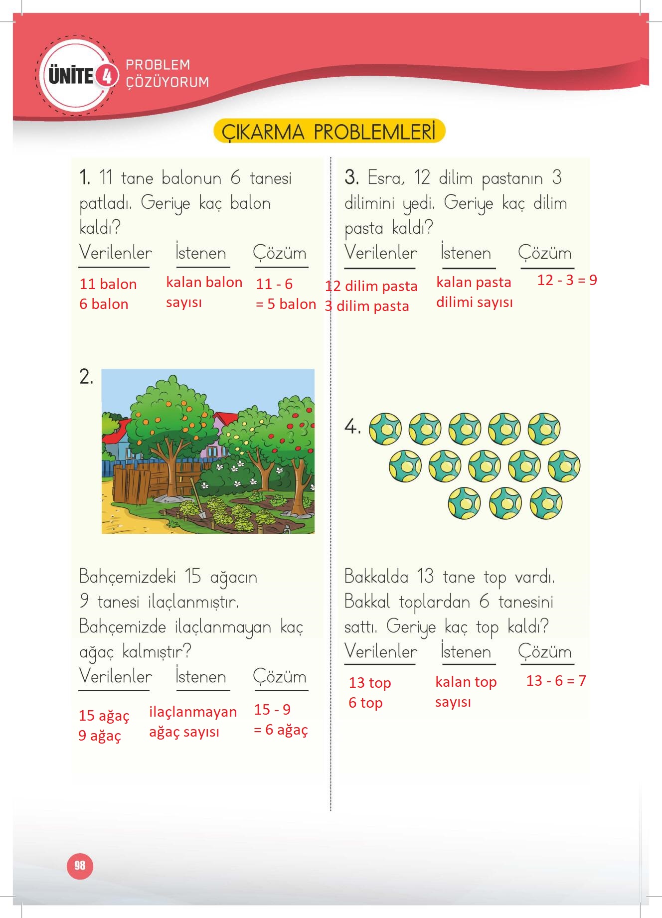 1. Sınıf Matematik Çalışma Kitabı (2. Kitap) Meb Yayınları Sayfa 98 Cevapları / Cevabı