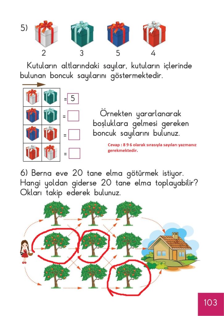 1. Sınıf Matematik Meb Yayınları Sayfa 103 Cevapları / Cevabı