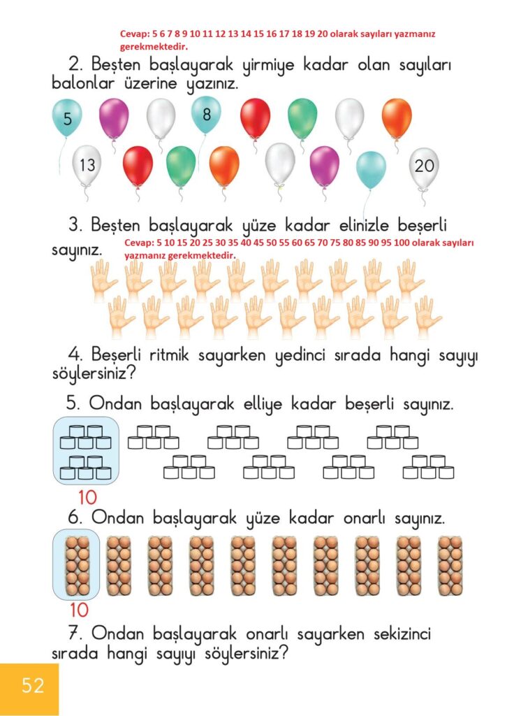 1. Sınıf Matematik Meb Yayınları Sayfa 52 Cevapları / Cevabı