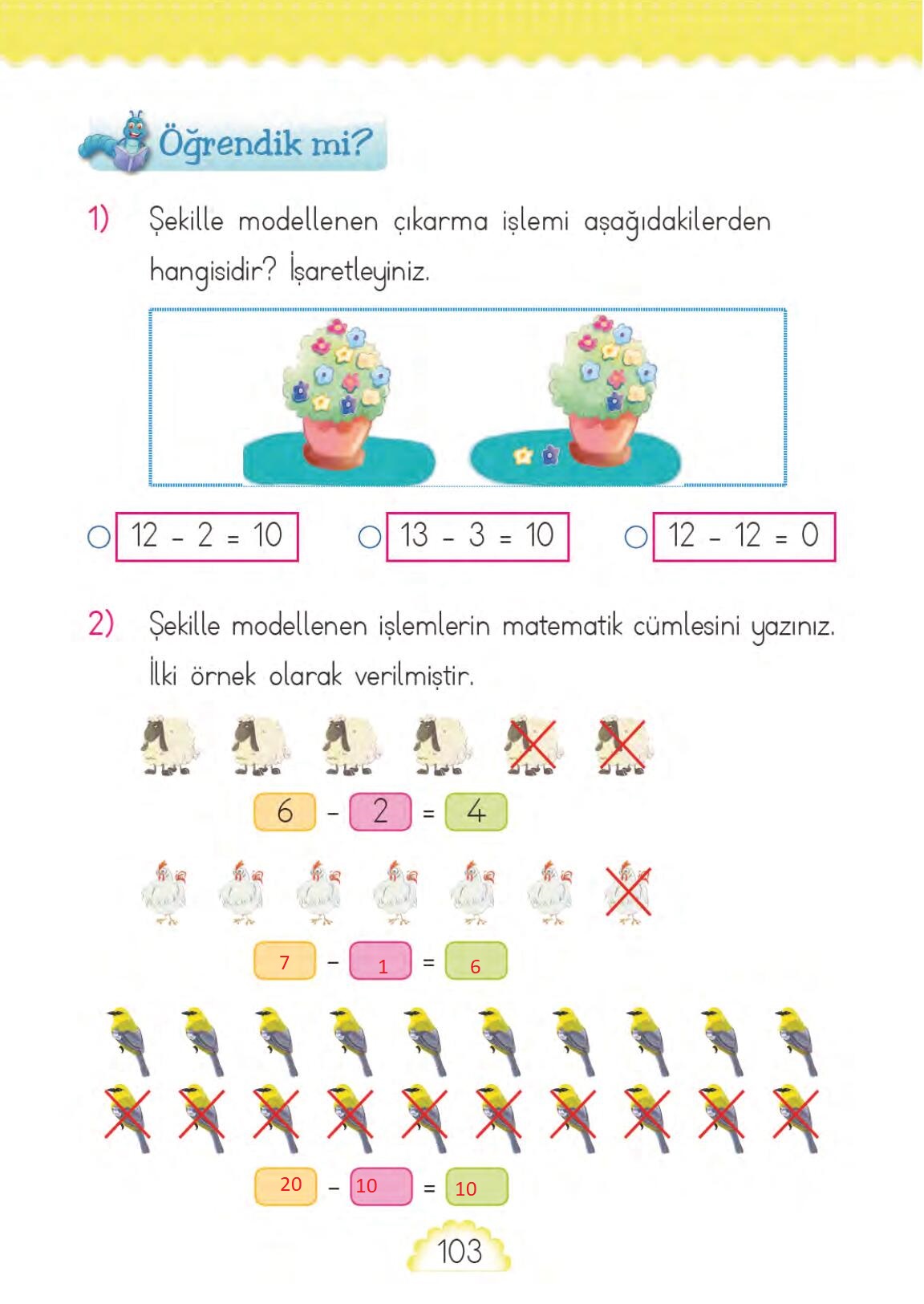 1. Sınıf Matematik MHG Yayınları Sayfa 103 Cevapları / Cevabı