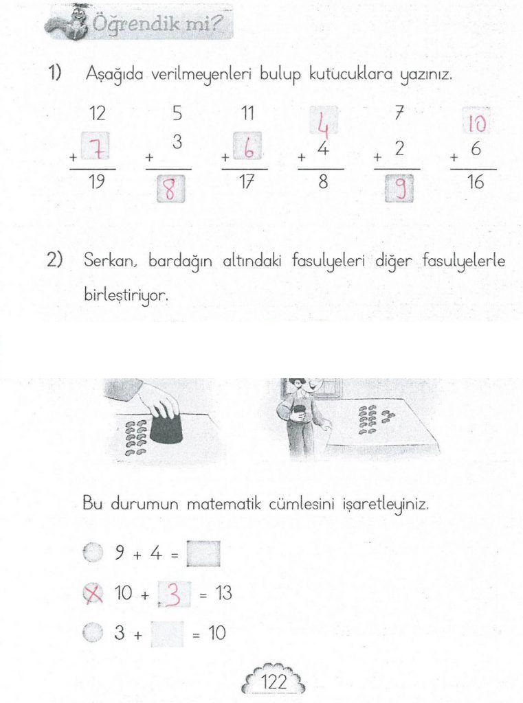 1. Sınıf Matematik MHG Yayınları Sayfa 122 Cevapları / Cevabı