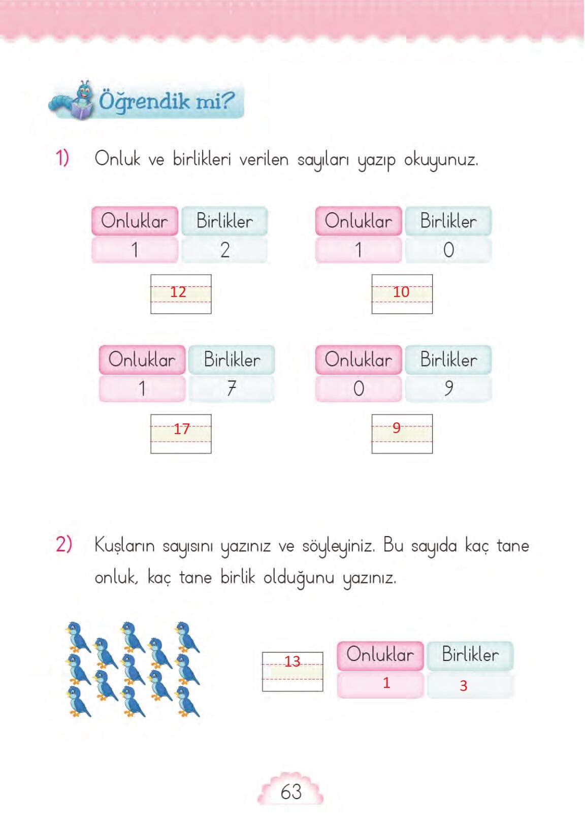 1. Sınıf Matematik MHG Yayınları Sayfa 63 Cevapları / Cevabı