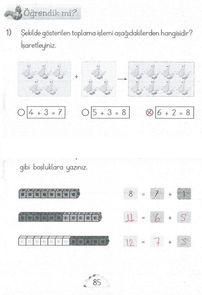 1. Sınıf Matematik MHG Yayınları Sayfa 85 Cevapları / Cevabı