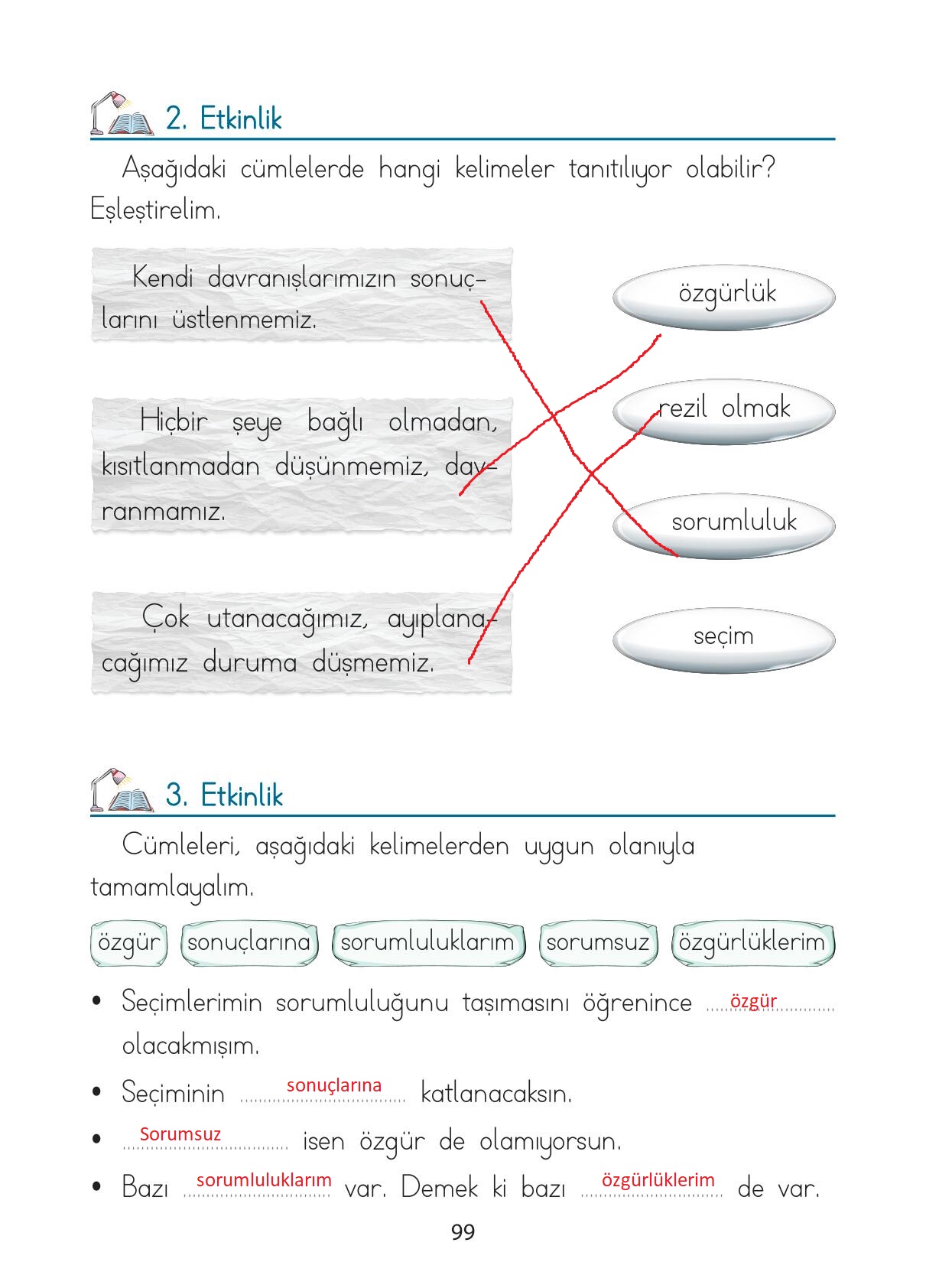 1. Sınıf Türkçe Ada Matbaacılık Yayıncılık Sayfa 99 Cevapları / Cevabı